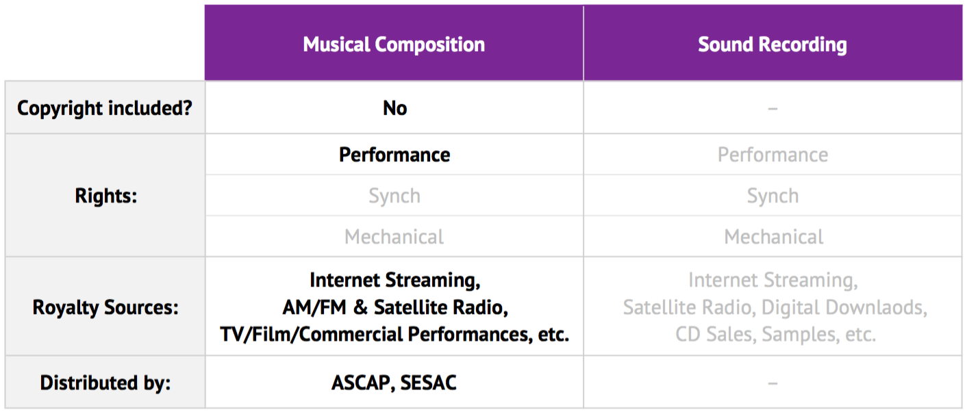 Every time a song in this catalog is played on the radio, Apple Music, Pandora, Spotify, or in any other type of public performance, you earn royalties. ASCAP makes payments quarterly and the next ASCAP payment is scheduled for October 2016.