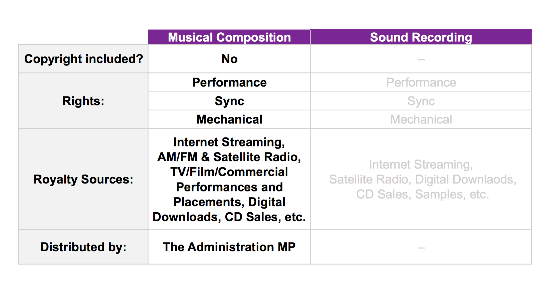 | Royalty Type: | Public Performance, Mechanical, Sync |