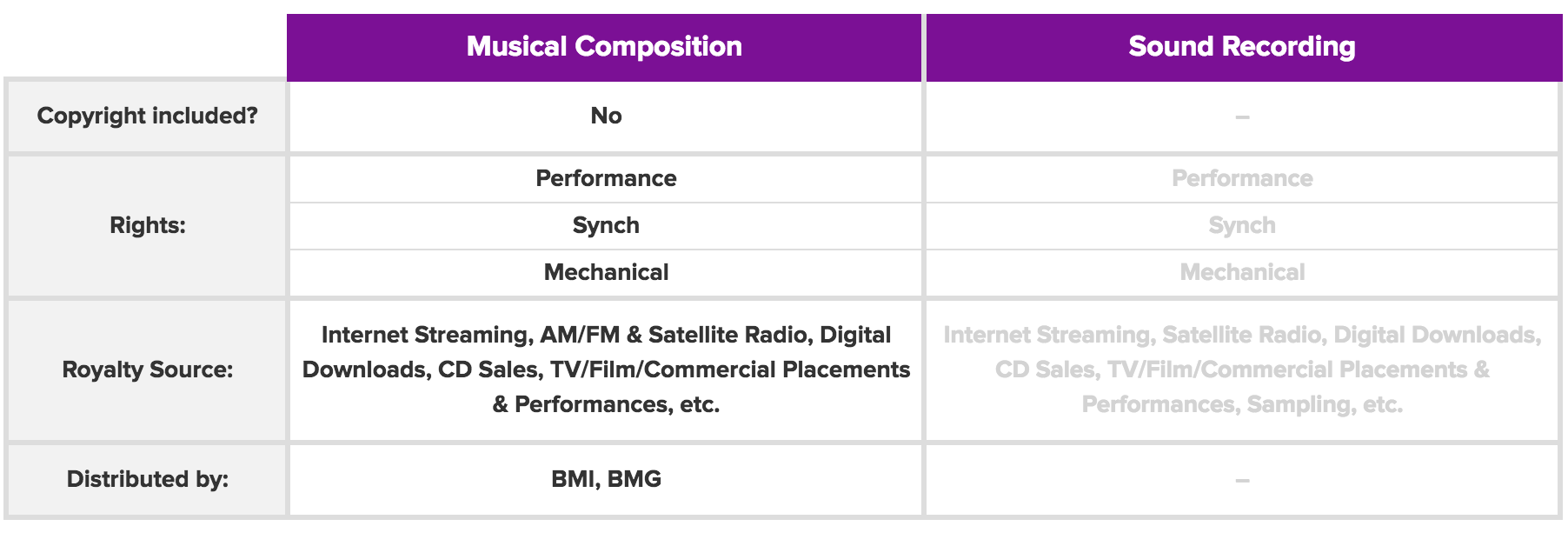 | Royalty Type: | Public Performance, Mechanical, Synch |