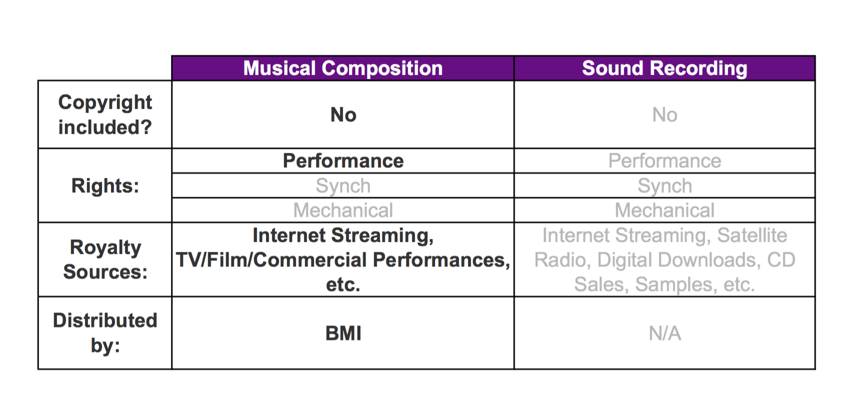 *BMI's fee to create a new payee account is $500. Royalty Exchange will happily administer these royalties so you don't have to create an account. That service costs $49 per year.